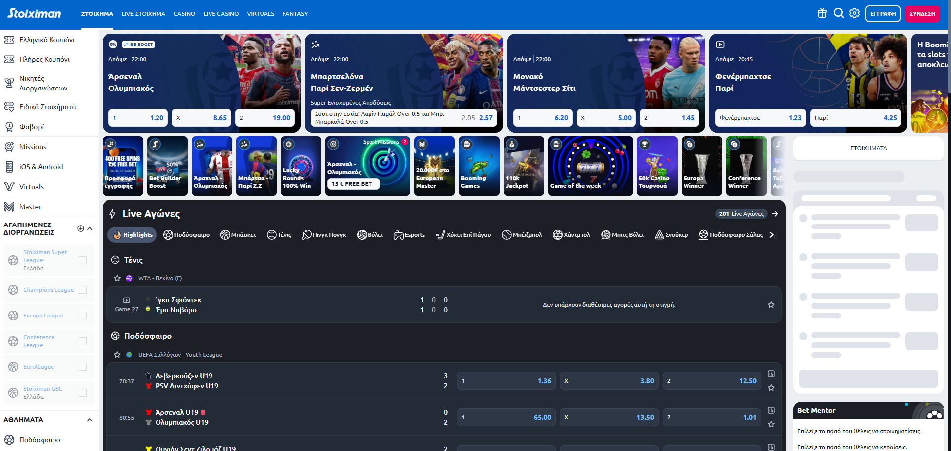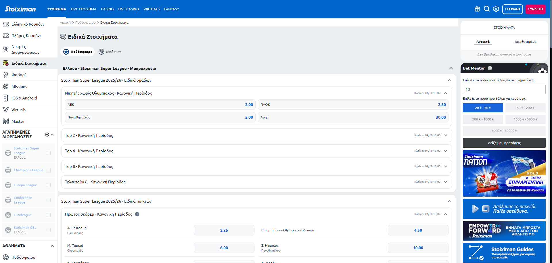 Διοργανώσεις και αγορές στην Stoiximan