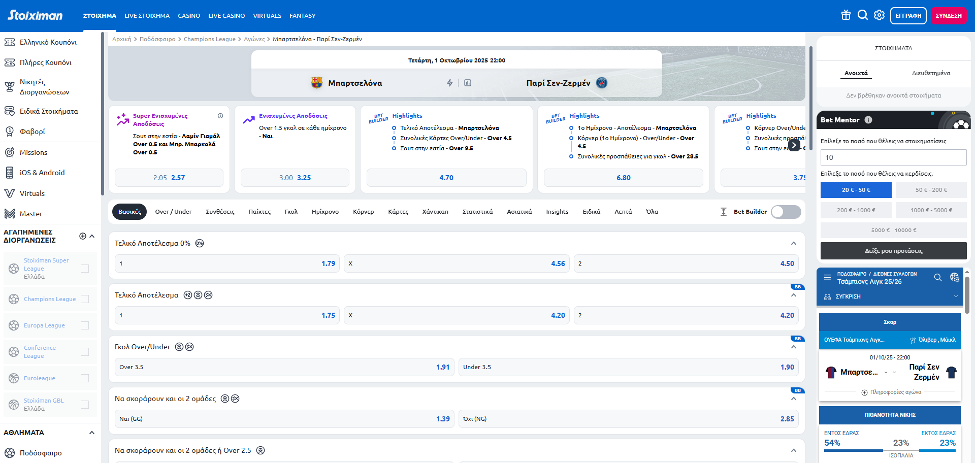 Bet Builder στην Stoiximan