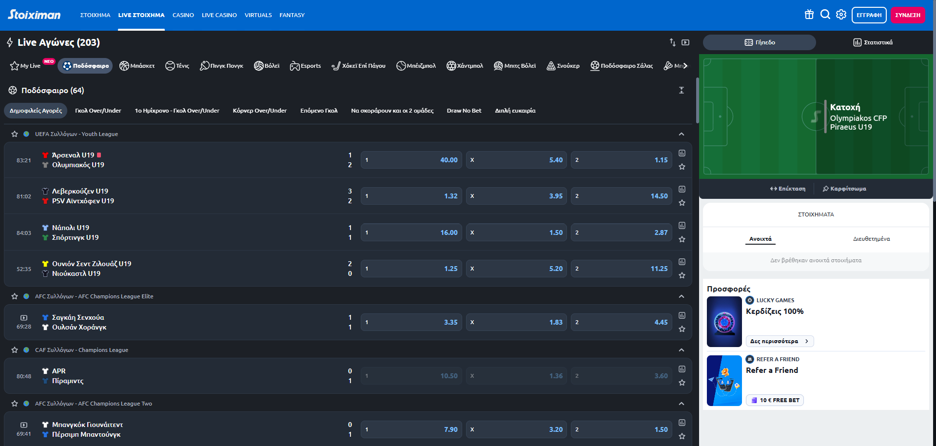 Live Betting στην Stoiximan