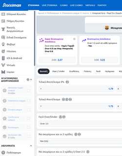 Παράλληλα, η Stoiximan προσφέρει και την υπηρεσία MatchCombo*, όπου μπορείτε να συνδυάζετε σε μια απόδοση διαφορετικές αγορές του ίδιου αγώνα σε ένα στοίχημα. Αν πάλι καταφέρετε και δε βρείτε το στοίχημα που επιθυμείτε, υπάρχει η υπηρεσία Πες το κι έγινε*. Οι Traders της Stoiximan είναι στη διάθεσή σας για οποιοδήποτε στοίχημα ή απόδοση δεν προσφέρεται αυτή τη στιγμή στην ιστοσελίδα. Ζητήστε το και η Stoiximan θα καταβάλει κάθε προσπάθεια για να σας το προσφέρει!