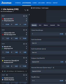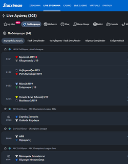 Οι επιλογές για live στοιχηματισμό είναι πάρα πολλές, σχεδόν όσες είναι διαθέσιμες και σε pre-game. Το live menu είναι απόλυτα εύχρηστο για να βρίσκει κανείς με ένα κλικ το άθλημα και τη διοργάνωση που θέλει, χωρίς χρονοτριβές. Η γρήγορη πλατφόρμα της Stoiximan εξαλείφει τις καθυστερήσεις, ενώ η ευελιξία των trader είναι μεγάλη ώστε να προσφέρει ταχύτατα τις αγορές ανάλογα με τα νέα δεδομένα της κάθε αναμέτρησης.